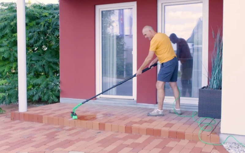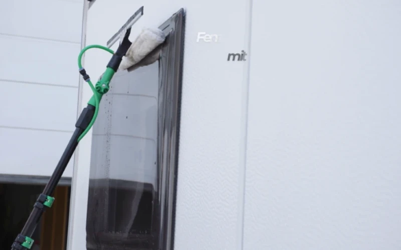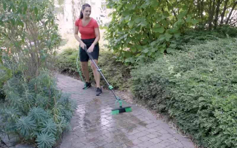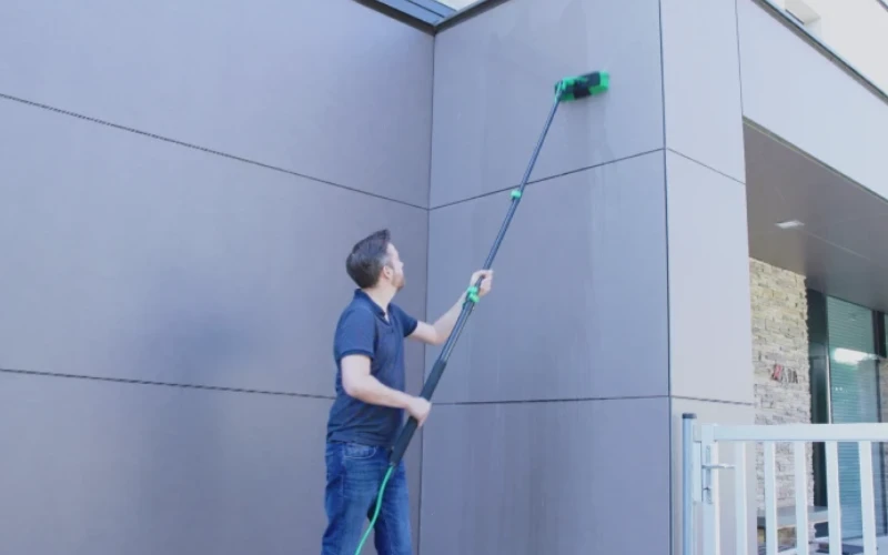 The Aqua Clean Deluxe draws water from any standard garden hose and blasts it through the brush head, knocking back years of dirt and grime in no time. And with a telescopic pole, you can even reach the second floor windows with ease.